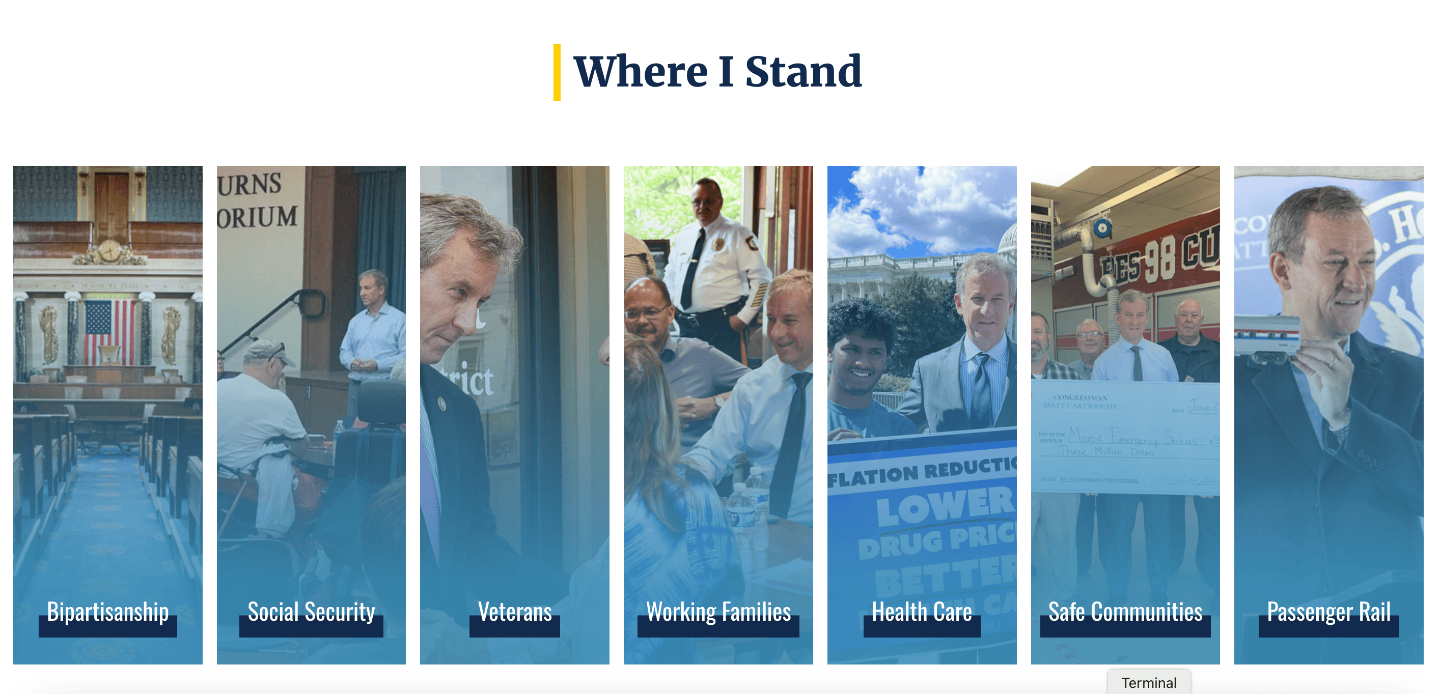 For a different take on animation, take a look at Rep. Wittman’s website. The animated count-up metrics are a great way to nudge visitors’ attention to the metrics that show how you’ve tangibly helped your district over the past congress.